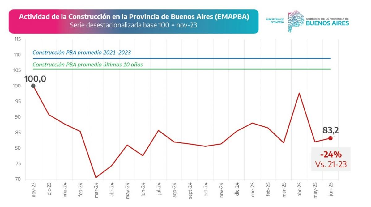 En junio, el nivel de actividad de la construcción en PBA se ubicó 24% abajo del promedio 2021-2023. Son números que hablan de una verdadera catástrofe. pic.twitter.com/gKuqdAErpN