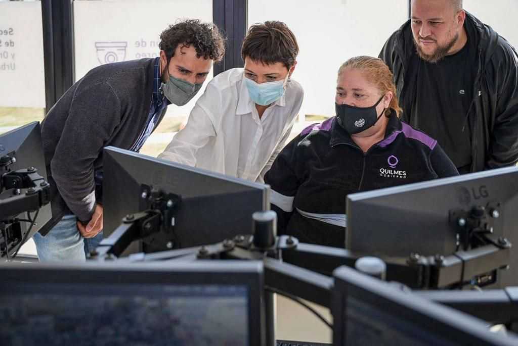 Acompañada por el secretario de Seguridad y Ordenamiento Urbano, Gaspar De Stéfano, y la titular de la Unidad de Prevención de la Policía Local, subcomisaria Valeria Juárez, la Intendenta supervisó la operatividad del sistema de vigilancia y saludó al personal a cargo de la nueva EMU de Quilmes y destacó: "Desde la Municipalidad vamos a sumar más Estaciones de Monitoreo Urbano para garantizar mayor seguridad e incluir más políticas de seguridad para cuidar a nuestros vecinos y vecinas".